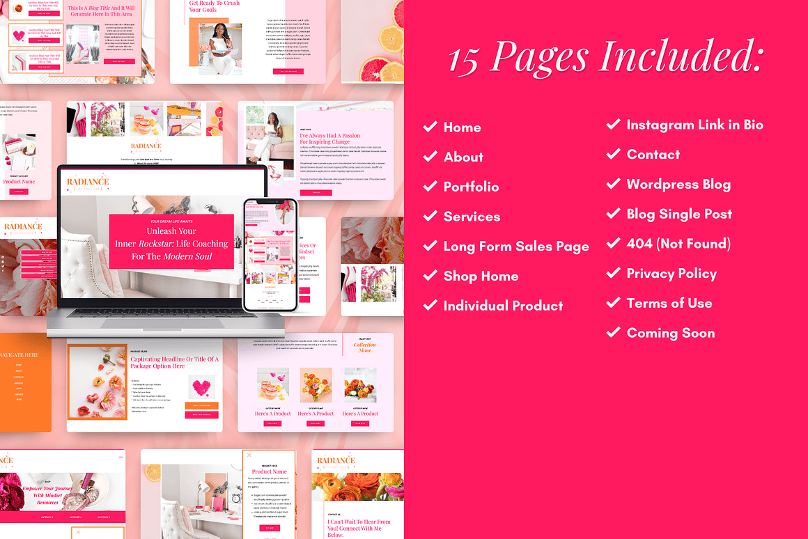 Jump into the fast lane and transform your online journey with the Radiance Showit Website Template – the template that roots for your success.